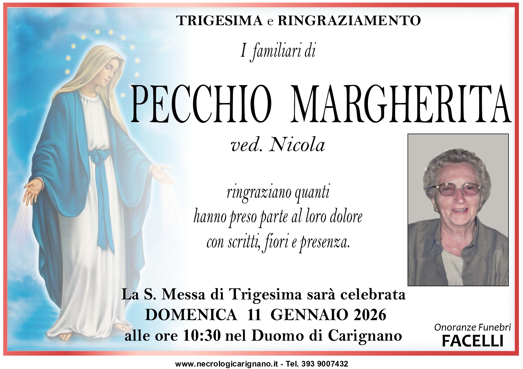 I familiari ringraziano anticipatamente tutti coloro che parteciperanno alla cerimonia funebre